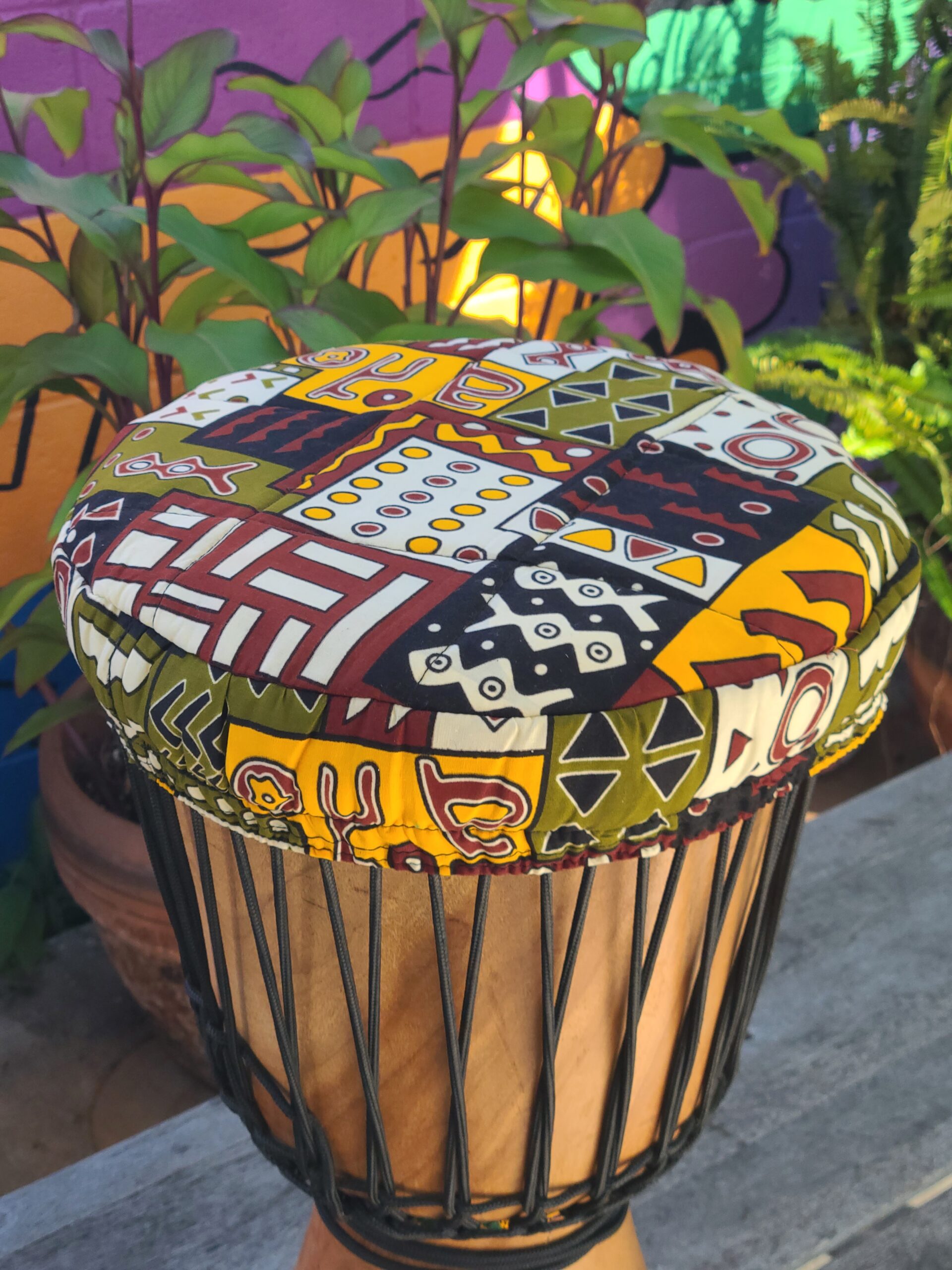 Overall diameter of drum hat measures 13 inches laying flat on the floor, fits drums with overall diameter of 13 inches and smaller
