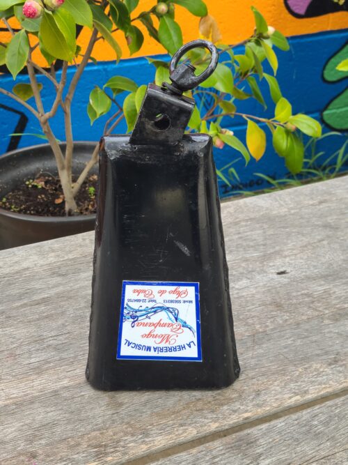 Toney, hollow, and penetrating sound considering the small size of this metal…castanet? clave? bell!? It has a sound that holds its own throughout the drum ensemble. Like most West African bells, these are made from salvaged scrap metal selected for good sound qualities. It is a two part instrument including the bell pod, which slips over the first or middle finger, and a metal thumb striker. We are not sure the exact origin of this instrument but it is common throughout Ghana. Also called dodonpo, variations can be found in neighboring countries.