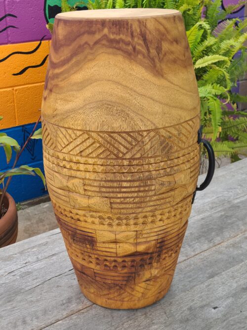 Custom at hour shop, this drum can be played with sticks or hands; we left the soft hair on this skin to keep his unique bass to it.