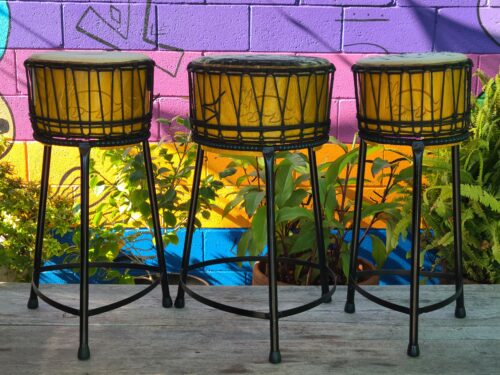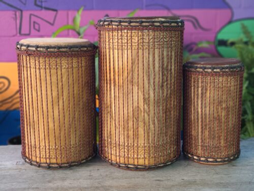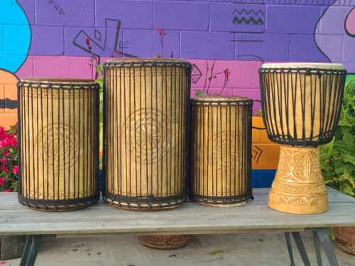 Susu jeli type balafon. The keys are thinner and wider and the gourd resonators bigger for more depth and sustain of the bass sound. The keys, and usually the frame are made from goni wood (Pterocarpus erinaceus) a commonly used quality musical instrument wood used throughout West Africa. Two rubber tipped playing mallets are provided with each instrument