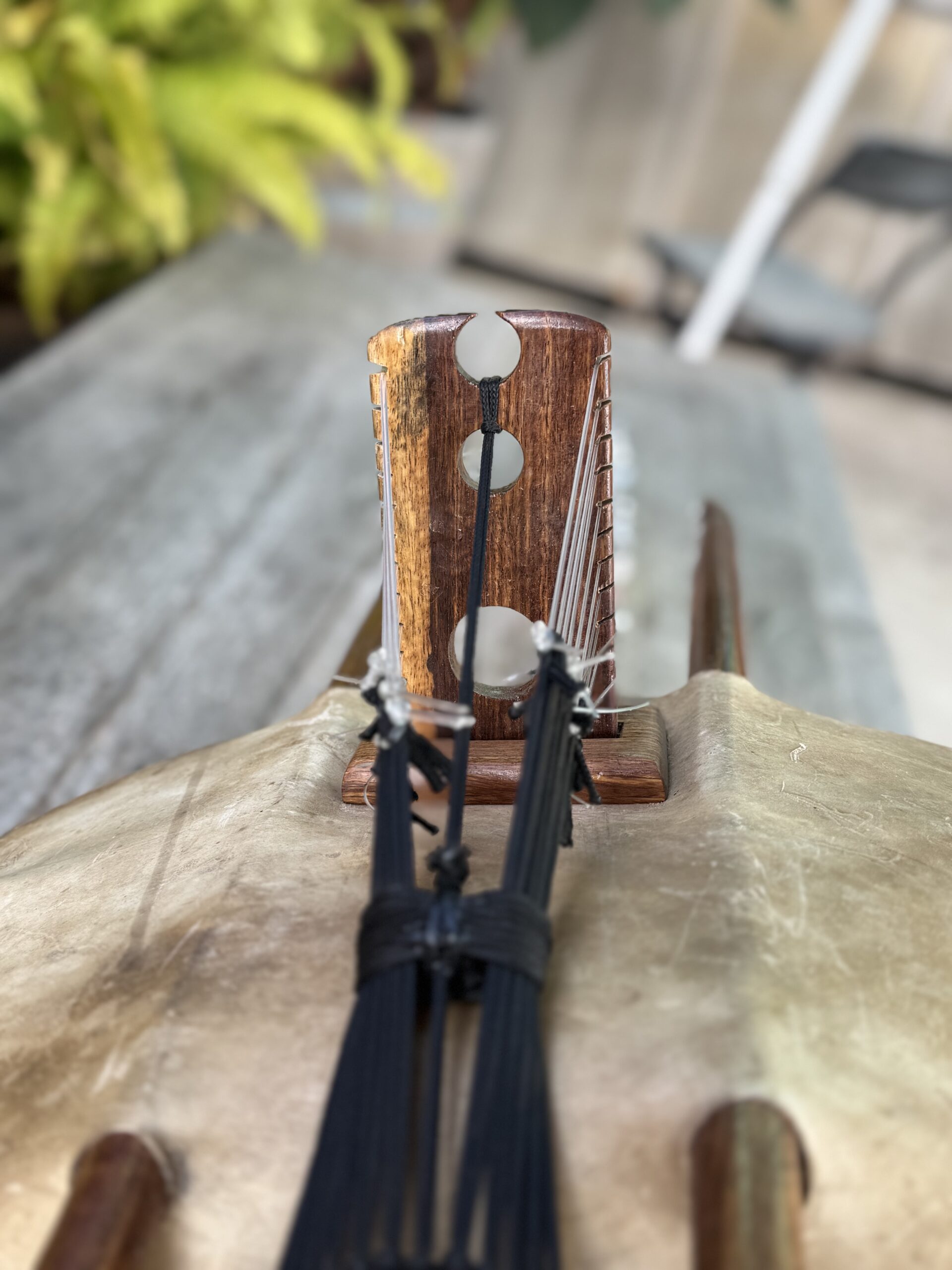 • String plucked like a harp